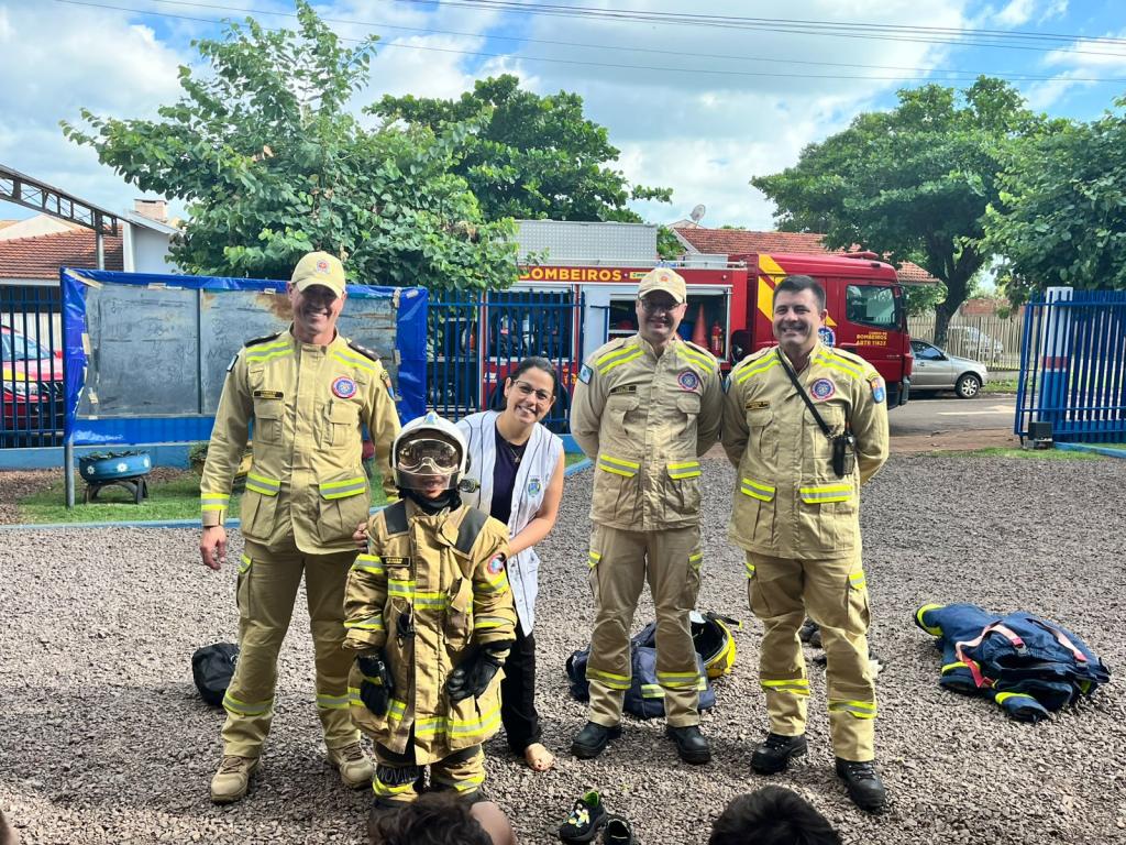 Durante a visita, de forma lúdica e educativa, os alunos puderam conhecer um pouco mais sobre o trabalho realizado pelos bombeiros militares, os equipamentos de resgate e salvamento utilizados nas ocorrências e, é claro, a parte mais aguardada do encontro: vestir as roupas e equipamentos de proteção utilizados no combate a incêndios.