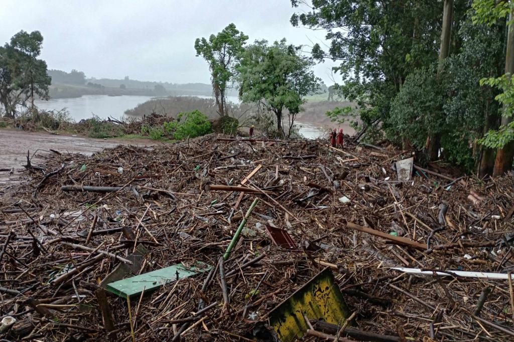 “A gente trabalha com a informação de nove desaparecidos. A área em que estamos é onde grande parte dos escombros que desceram rio abaixo, das cidades de Roca Sales, Muçum e Encantado vieram parar. Foi onde localizamos o corpo na segunda-feira passada”, explica o major.