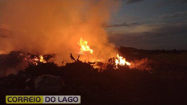Na noite desta terça-feira (02), o Corpo de Bombeiros foi chamado para controlar um incêndio em um local onde resíduos, inclusive lixo, estão sendo descartados no distrito de São Clemente, em Santa Helena.