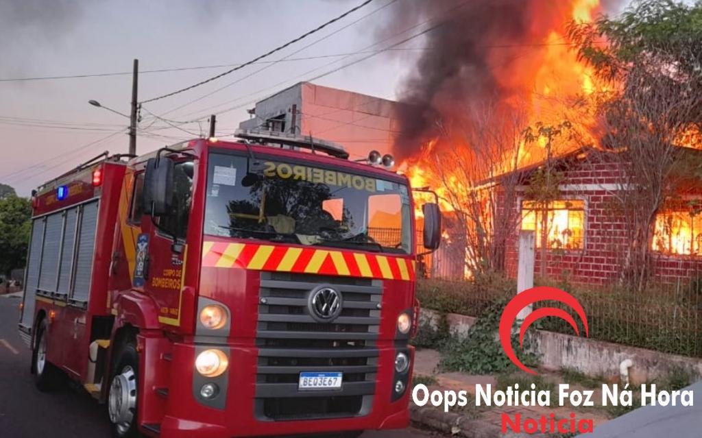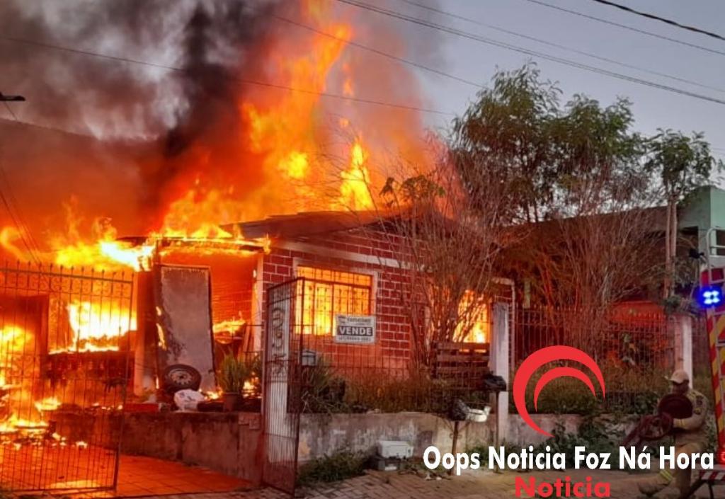 Na noite de ontem (05), equipes do Corpo de Bombeiros foram acionadas para atender uma ocorrência de incêndio em uma residência na Vila Shalon, proximidades do 14º Batalhão da Polícia Militar, área sul de Foz do Iguaçu.