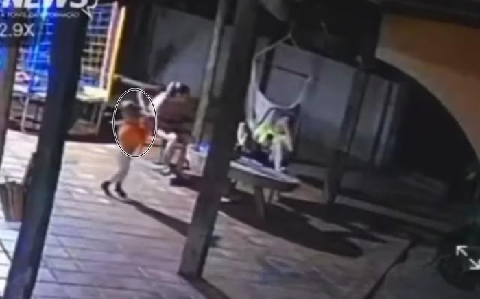 Segundo a polícia, o casal estava sentado na varanda de casa, em Rio Verde de Mato Grosso (MS), com o filho quando o caso aconteceu. Tudo foi registrado por imagens de câmeras de segurança.