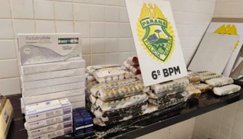 Durante a vistoria, os policiais encontraram diversos medicamentos que haviam entrado no país de forma irregular. Entre os produtos apreendidos estavam anabolizantes e substâncias utilizadas para emagrecimento, como Deca, Trembolona e Retratutide, além de outras ampolas e canetas.