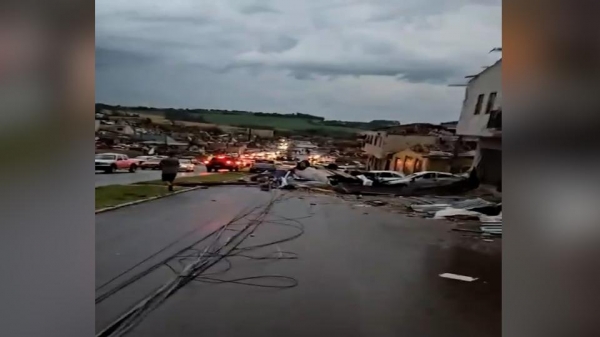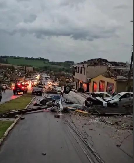O tornado, classificado inicialmente como categoria F2 na Escala Fujita, provocou ventos superiores a 200 km/h, destelhando imóveis e derrubando postes, árvores e veículos.