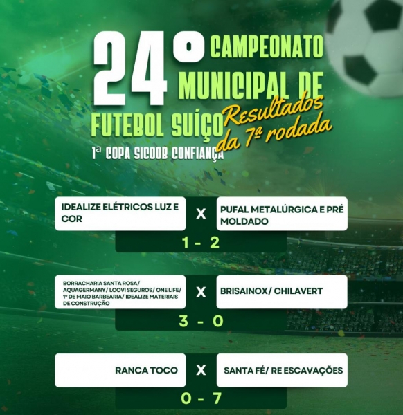 Estão definidos os quatro semifinalistas do 24º Campeonato Municipal de Futebol Suíço – 1ª Copa Sicoob Confiança. Os jogos da última rodada da primeira fase foram realizados na noite de quarta-feira (01), no campo do Clube União, no distrito de Alto Santa Fé, com partidas decisivas que definiram os classificados.