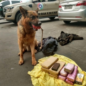 Durante a abordagem o condutor homem de 53 anos demonstrou-se nervoso e incomodado, imediatamente o canil foi acionado e em buscas o cão indicou a existência de drogas no tanque de combustível.