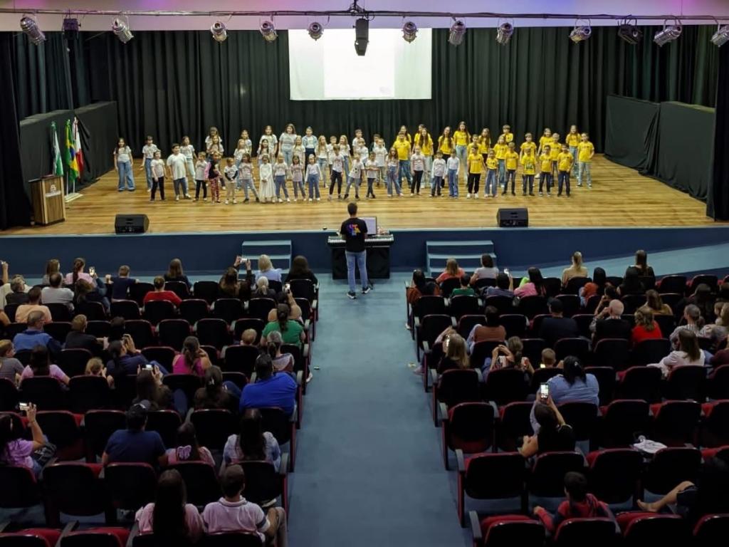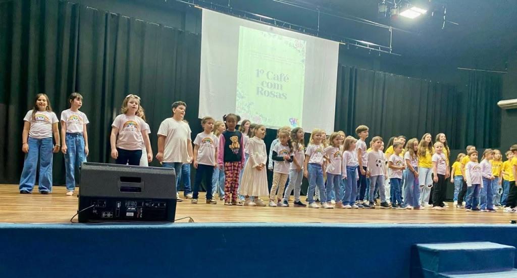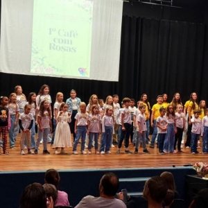 O Teatro Municipal Gustavo Fischer foi palco na noite de segunda-feira (12) de um momento repleto de emoção, afeto e arte: o 1º Café com Rosas. O evento foi uma homenagem especial às mães, promovido pelo Departamento de Cultura de Nova Santa Rosa junto aos corais “Sementes do Amanhã” e “Ao Amanhecer”.