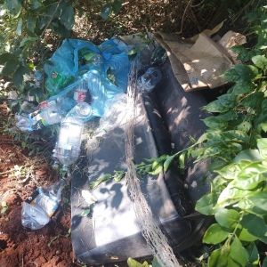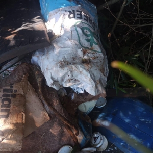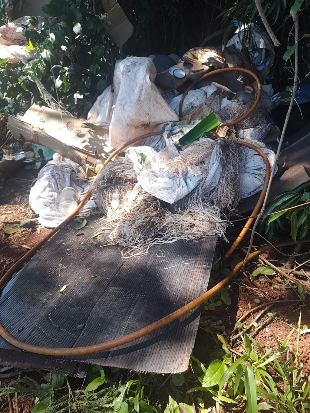 Na manhã desta segunda-feira (16), moradores da Linha Guaçu, estrada para a pedreira, no interior de Nova Santa Rosa, encontraram uma grande quantidade de lixo descartada de forma irregular à beira do mato.