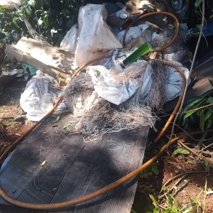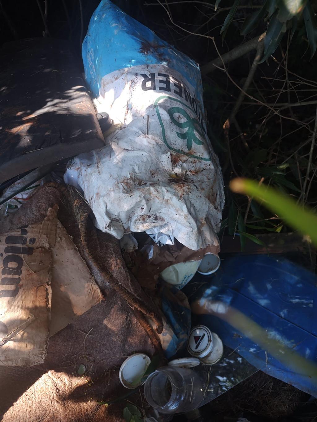 Entre os materiais descartados estavam sacos de sementes, pilhas, vidros e outros resíduos. Os moradores da região, que acreditam que o lixo tenha sido jogado no sábado (14), demonstraram preocupação com os impactos ambientais e os riscos à saúde pública.