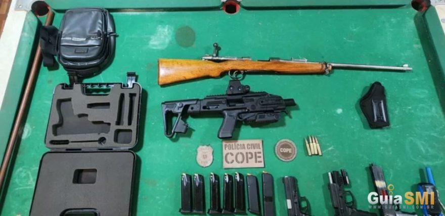 Além da prisão, foram apreendidas várias armas de fogo, entre elas pistolas, munição, um fuzil e uma espingarda, que podem ter sido utilizadas tanto no assalto quanto nos disparos recentes.