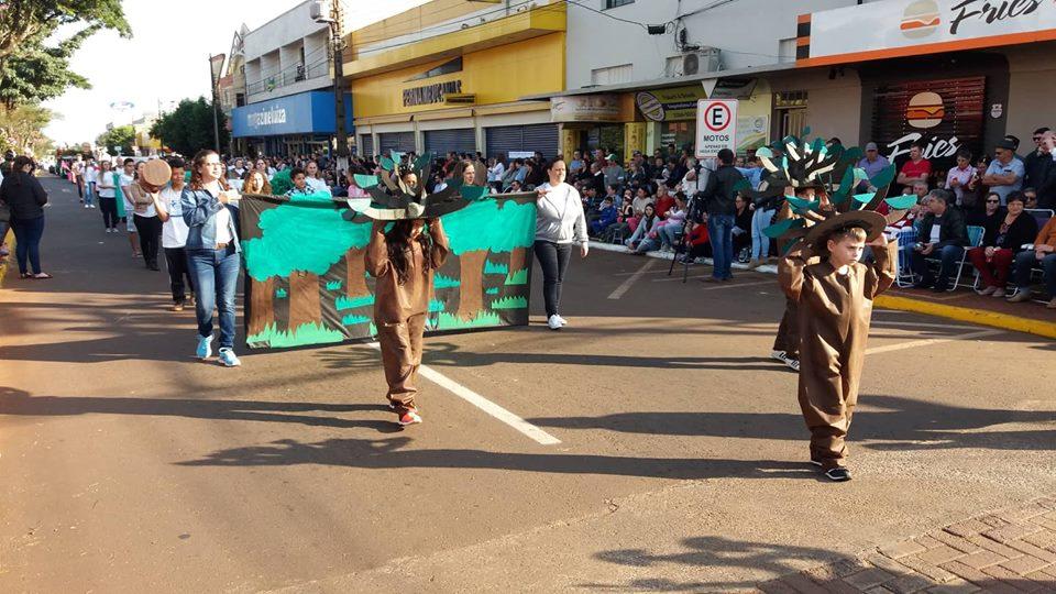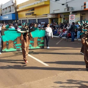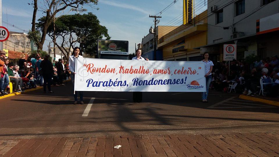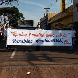 Este ano, o desfile teve como tema, o hino municipal, buscando evidenciar as riquezas do município e divulgar ações, projetos e entidades que contribuem com o desenvolvimento rondonense.