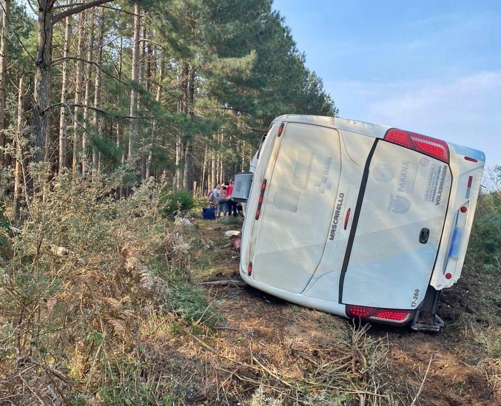 Ao menos 19 pessoas ficaram feridas em um acidente na tarde deste domingo (4), envolvendo o ônibus da Secretaria de Saúde de Palmas na rodovia PRC-280. Conforme informações apuradas pela Rádio Club/RBJ, nove pessoas permaneceram sob cuidados na Unidade de Pronto Atendimento (UPA). Não se tratam de casos de extrema gravidade, segundo a equipe médica