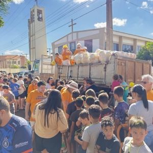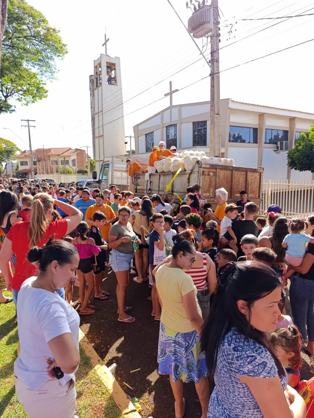 A programação contou com diversas atrações que encantaram o público, como brinquedos infláveis, karaokê infantil e uma variedade de lanches especialmente preparados para a garotada. O ponto alto do evento foi a distribuição de 800 bolas, garantindo que todas as crianças presentes — desde bebês de colo até adolescentes de 14 anos — levassem uma bola para casa como lembrança desse dia especial e inesquecível.