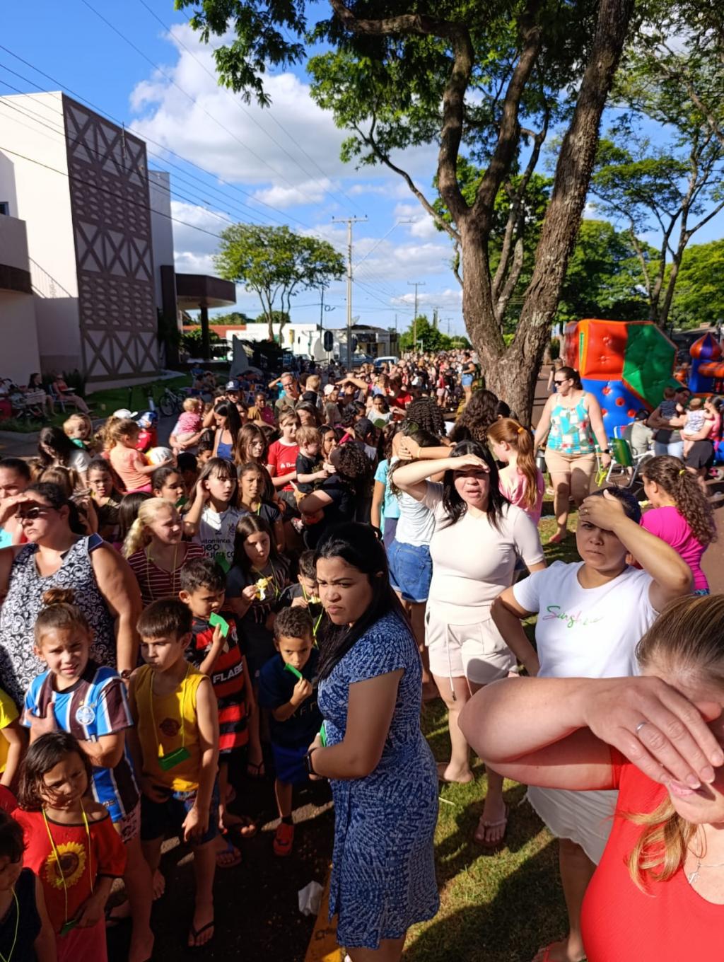 A sexta-feira (31) foi marcada por muita alegria e diversão em Nova Santa Rosa. Mais uma edição do Dia da Criança na Praça da Bíblia foi realizada com grande sucesso, reunindo cerca de 1.500 pessoas entre crianças e famílias, que aproveitaram uma tarde repleta de lazer, brincadeiras e confraternização.