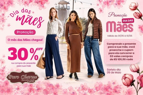 Maio está chegando e trazendo uma das datas mais especiais do ano: o Dia das Mães! E quem quer surpreender no presente encontra uma oportunidade imperdível em Nova Santa Rosa. A loja Puro Charme preparou uma promoção que une estilo, economia e ainda um incentivo a mais para os clientes.