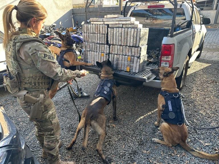Foi realizada então uma verificação mais profunda da carga, com a utilização de cães farejadores da PRF, que sinalizaram a presença de ilícitos no veículo. A carga de cocaína foi localizada em caixa, embaixo de peças de telefonia.