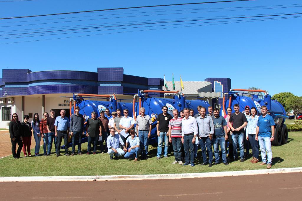 Foi realizada na tarde desta quarta-feira (5), em frente ao Paço Municipal, a entrega de três novos distribuidores de adubo orgânico líquido, adquiridos por meio de convênio com a Itaipu Binacional. As associações de agricultores contempladas foram a Linha Sanga da Sede e Piratininga, da sede do município, e Linha Harmonia, do distrito de Pérola Independente. A ação faz parte do Programa de Gestão de Solo e Águas em Micro Bacias, que está atendendo os Lajeados Bem-Te-Vi e Arara.