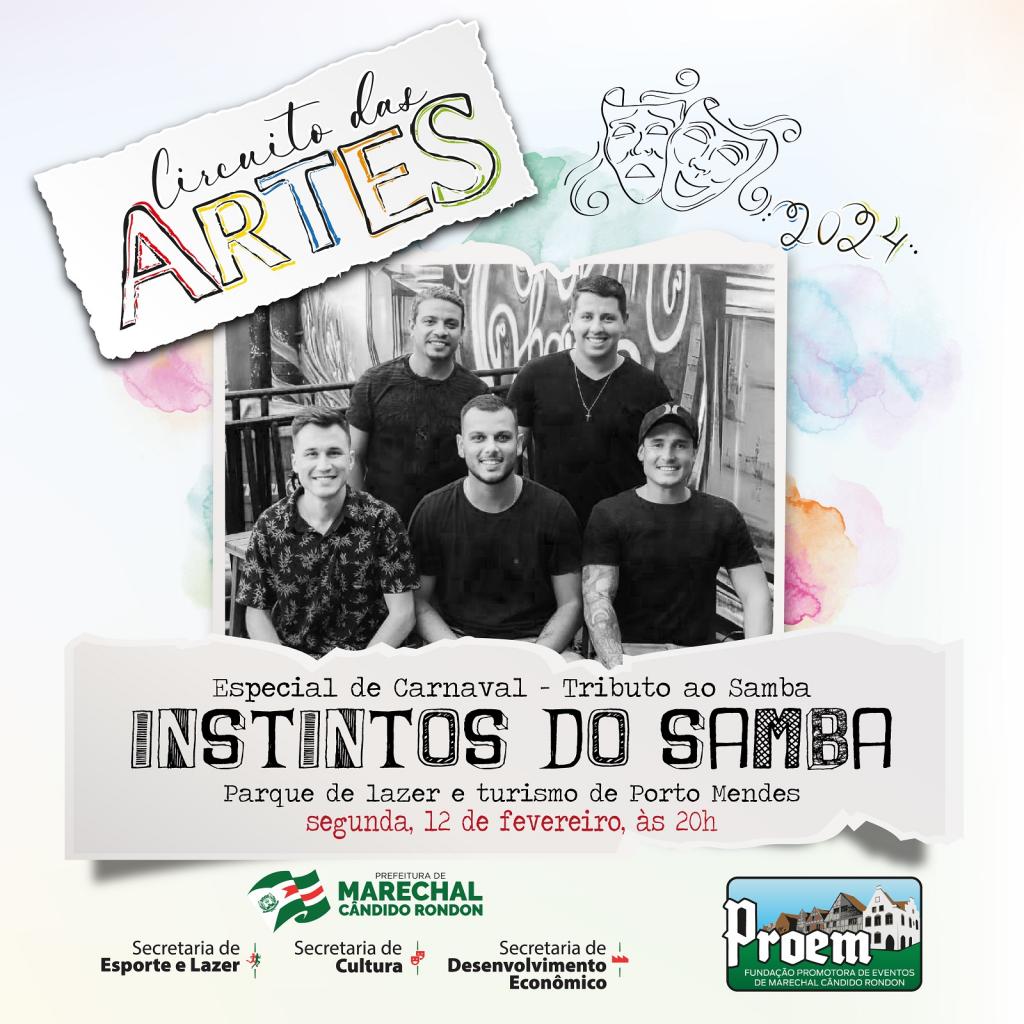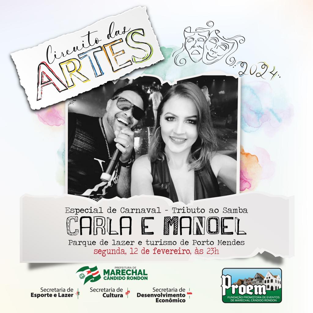 O último dia de atividades será em 12 de fevereiro (segunda-feira), apenas em Porto Mendes, com as apresentações da banda Instintos do Samba, das 20h às 23h, e da dupla Carla e Manoel, das 23h até 1h30.