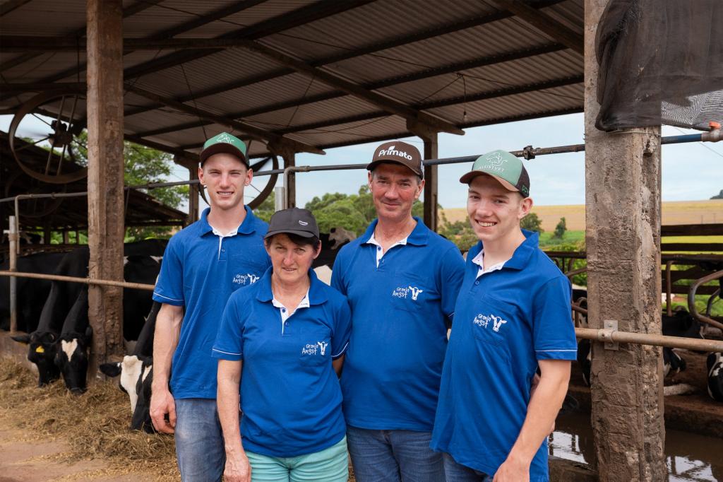 Associados a Cooperativa Agroindustrial Primato há mais de 24 anos, a família Angst conquistou a solidez para conseguir alimentar os filhos e gerar valor a todo alimento é que produzido ali. “Colocamos amor em tudo o que fazemos: no cuidado com o animal, no zelo com a terra, na busca por melhoria com o apoio da Cooperativa que nos atende e que sempre apresenta alternativas que sejam eficazes para o meio ambiente também”, disse o patriarca Emílio.