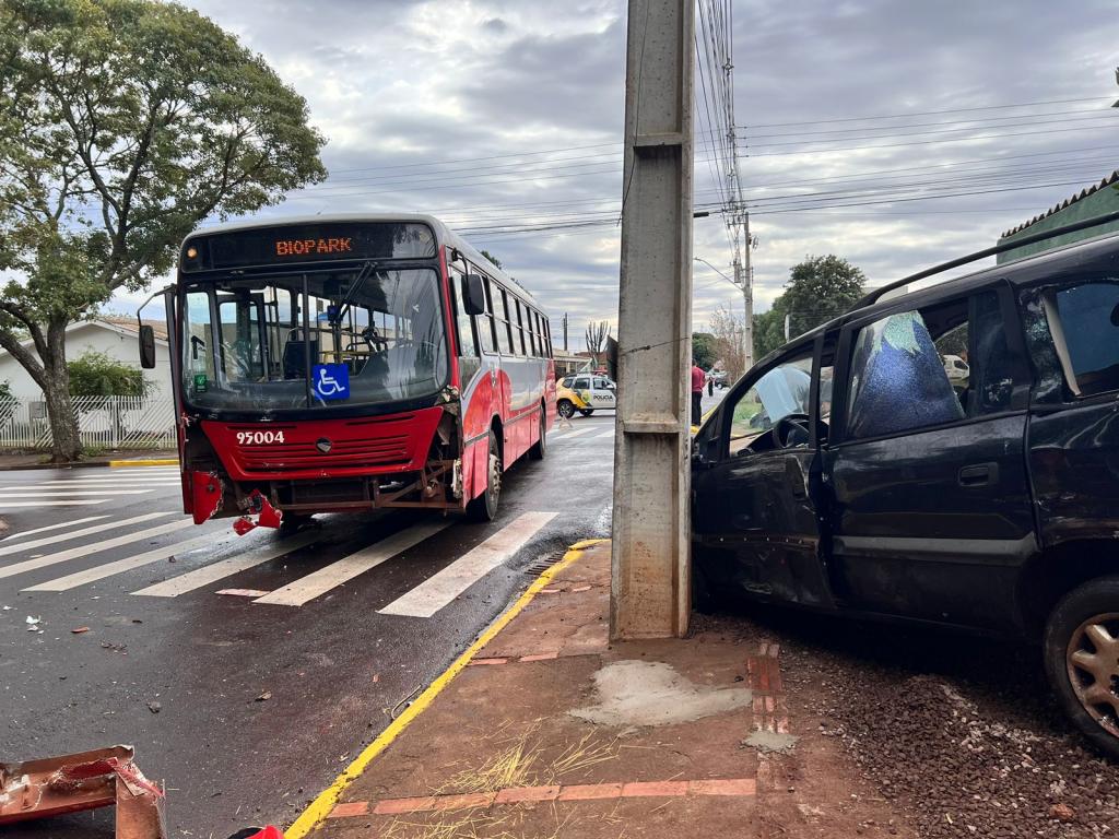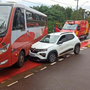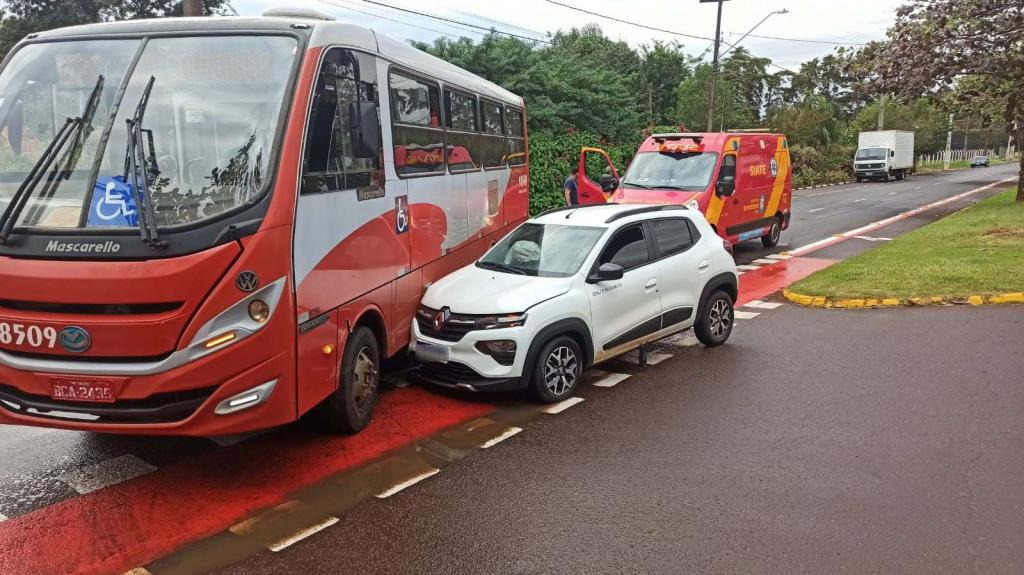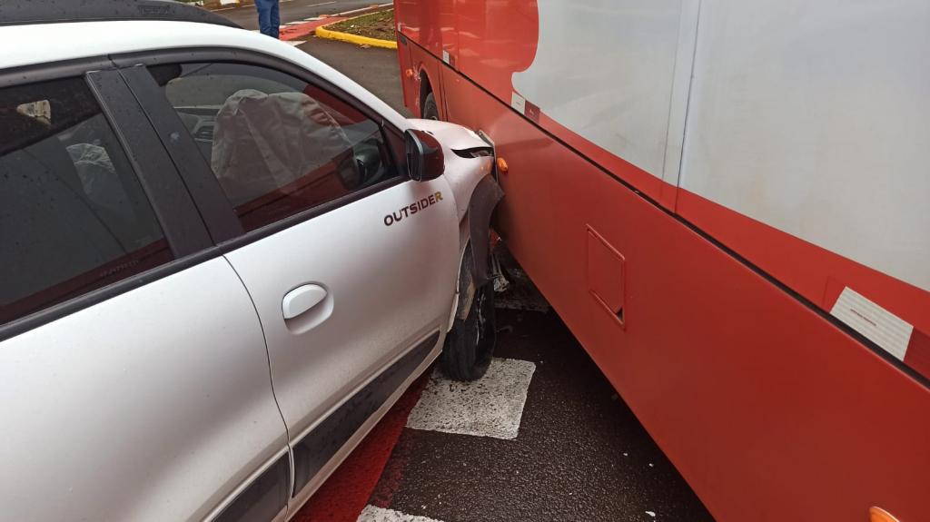 Dois acidentes de trânsito envolvendo ônibus e carro foram registrados, em Toledo, nesta tarde de segunda-feira (17).