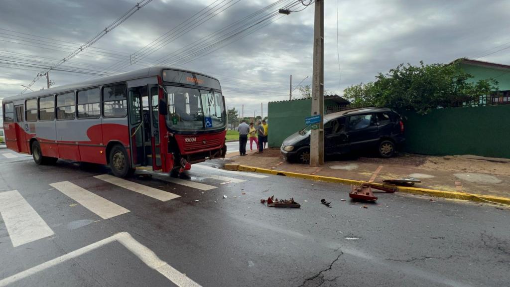 Na primeira situação, um ônibus de transporte público e um automóvel Zafira de cor preta, conduzido por um homem, colidiram no cruzamento da Rua Eugênio Gustavo Keller com a Rua Fiorovante Cielo, no Jardim Coopagro.