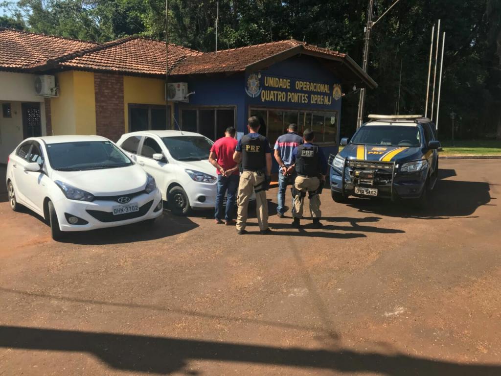 Foi dada a voz de prisão aos dois indivíduos. Estes e os veículos foram levados para a Unidade Operacional da PRF de Quatro Pontes. Lá chegando contataram que os veículos eram produto de Roubo/Furto. Sendo o Ford Ka, ano 2016, branco (roubado em 25/03/2017 em Viamão - RS) e Hyundai HB20S, ano 2015, branco (roubado em 30/04/2018 em Alvorada - RS).