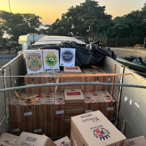 Ao perceber a presença policial os indivíduos empreenderam fuga, não sendo possível localizá-los. Após verificação foi constatado que havia 30.000 pacotes de cigarros e 8 pneus de origem estrangeira.