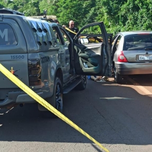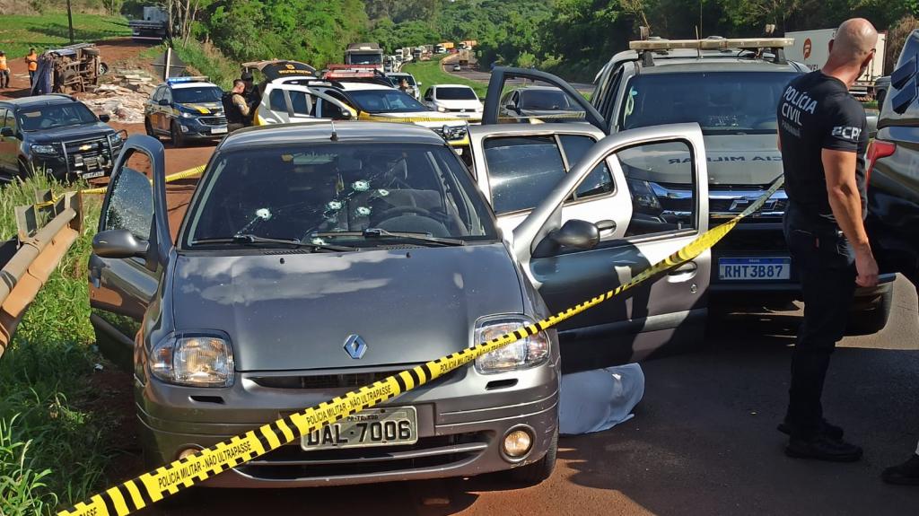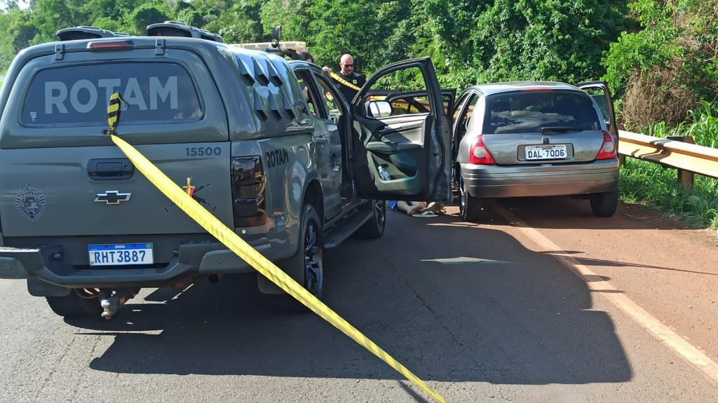 Na tarde desta quarta-feira uma equipe da Rotam da Polícia Militar de Toledo tentou abordar um veículo Renault Clio com placas de Toledo que seguia no sentido Cascavel a Toledo pela rodovia BR 163 foi recebida a tiros por dois elementos que estavam no carro.
