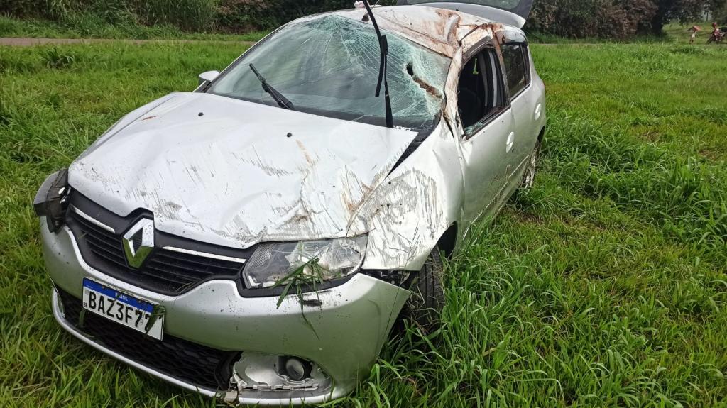 Os policiais foram atrás fazendo um acompanhamento tático e em uma curva o condutor perdeu o controle veio a capotar fora da pista parando na posição normal.