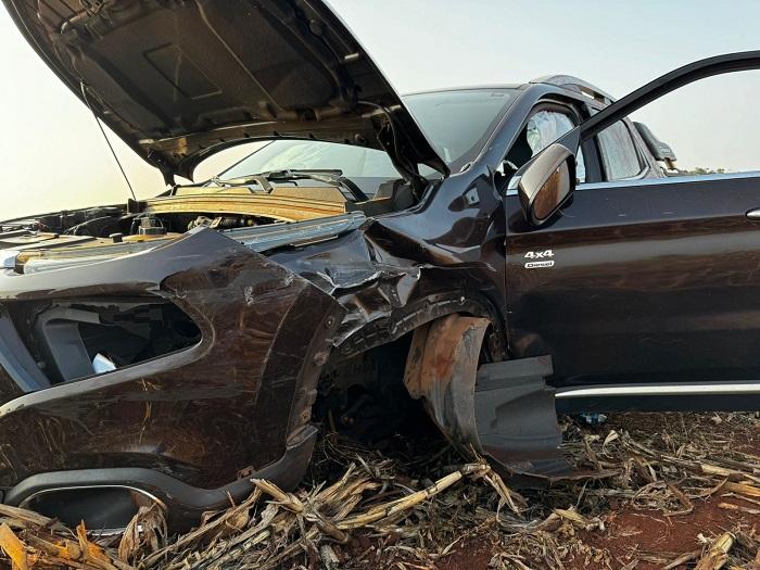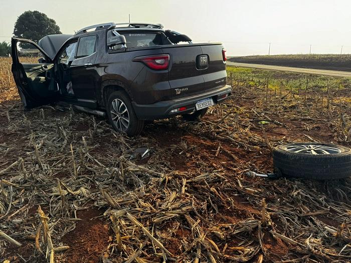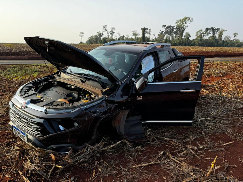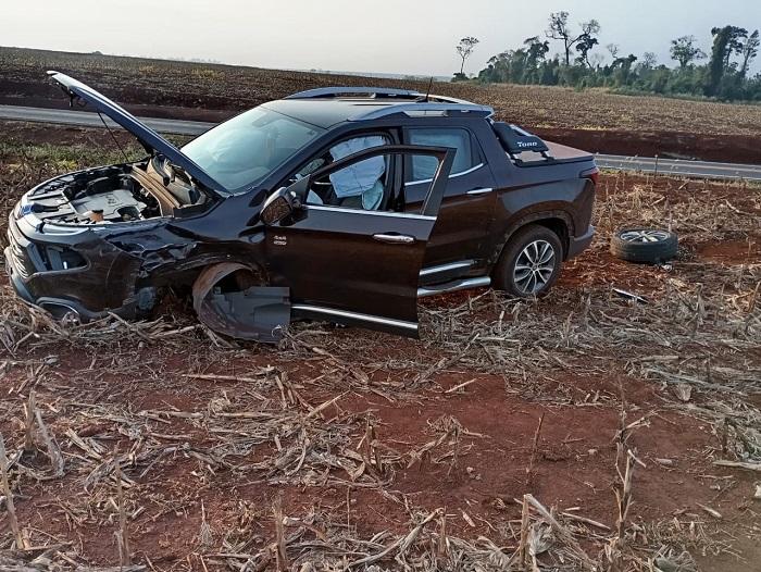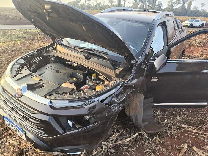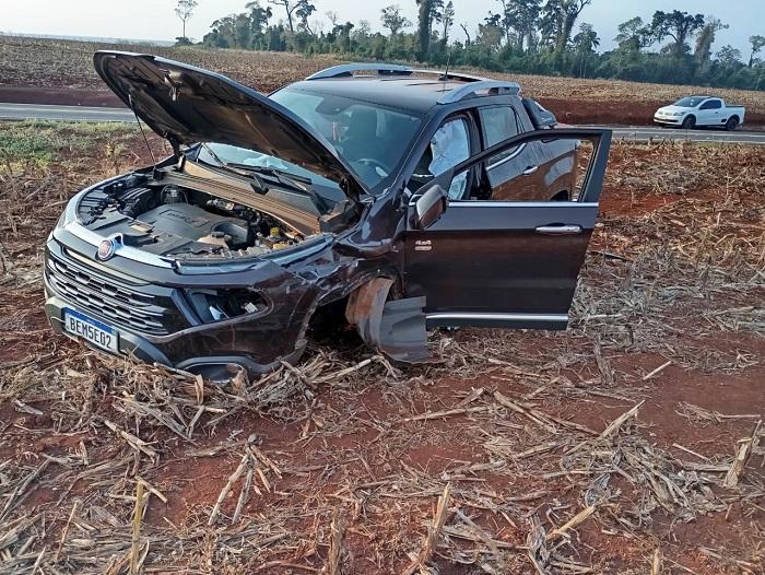 Segundo o que informou um popular que reside nas proximidades, o Toro teria invadido a pista contraria quando houve a colisão lateral entre os dois carros que foram parar as margens da rodovia em uma lavoura, o Fiat teve o airbag acionado e a roda dianteira esquerda arrancada.