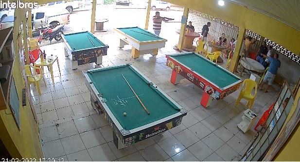 Antes de fugirem em uma caminhonete branca, um dos suspeitos pega uma quantia de dinheiro que está em uma das mesas de sinuca, além de outros objetos. Eles estão foragidos.