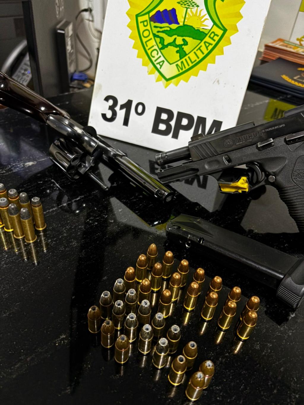Nesta segunda-feira (20), uma equipe da Patrulha Rural do 31º Batalhão de Polícia Militar prendeu dois homens por porte ilegal de armas de fogo de calibre restrito, no distrito de Ouro Verde do Piquiri, em Corbélia.