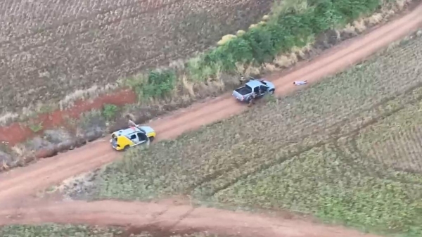 Por volta das 17h20, a aeronave do BPMOA avistou a caminhonete adentrando novamente o município de Catanduvas. Ao perceberem a presença do helicóptero, os suspeitos tentaram fugir em direção à zona rural. No entanto, após alguns minutos, decidiram se render.