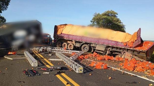 A batida envolveu um Scania R450, com placas de Santa Cruz do Sul (RS), e um Agrale 10000, com placas de Arapoti. Os caminhões trafegavam em sentidos opostos e se envolveram na batida frontal no quilômetro 231.