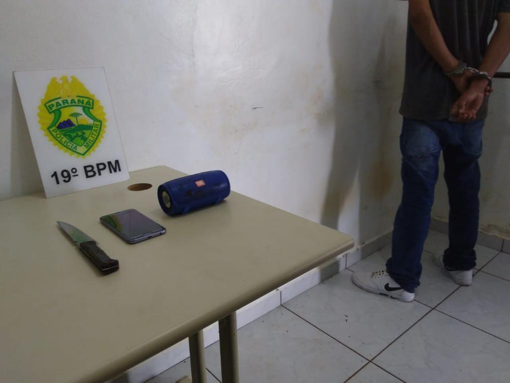 Ainda em diligências, foi abordado nos fundos da rodoviária, outro indivíduo que foi identificado e que tem 18 anos, como sendo supostamente o ladrão e que seria morador de Cascavel. No qual, apresentou as mesmas características passadas como sendo o autor do roubo, quem foi reconhecido pela vítima, sendo localizado próximo ao local da abordagem uma faca do cabo preto e lâmina de 15 cm. Em consulta ao sistema policial, de ambos possuem passagem policiais, sendo que o autor do roubo havia sido preso no último dia 7 de fevereiro, por furtar uma camisa do Corinthians de uma loja, no Jardim Porto Alegre.
