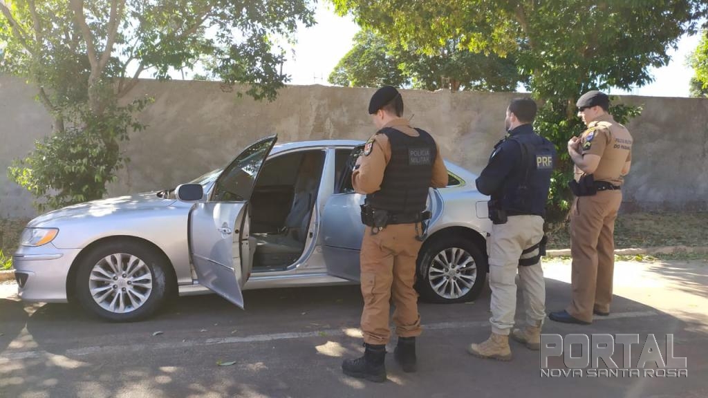 Em ato contínuo uma equipe de militares realizou diligências na área urbana de Terra Roxa, obtendo êxito em localizar na Av. Leonor de Held, defronte a Escola Primeiros Passos, o veículo Astra e o veículo Hyundai/Azera, ambos com características de carros preparados para contrabando/descaminho, sem alterta de furto/roubo, mas com bloqueio judicial.