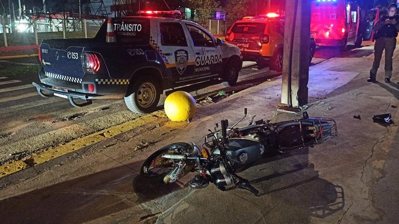 O carro trafegava pela avenida no sentido ao Jardim Panorama e atrás seguia o motociclista, segundo informações do motorista do carro o condutor da moto foi fazer uma ultrapassagem pela direita momento que aconteceu a colisão.