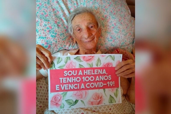 “Tenho 100 anos. Não posso falar muito porque estou cansada. Estava com uma doença e, graças a Deus, consegui a cura. Estou curada do vírus porque este hospital é uma preciosidade. Funcionários dedicados e amigos. A todos o meu grande reconhecimento”, disse Helena ao receber alta.