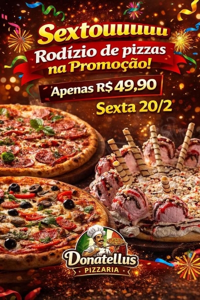 Mais informações podem ser obtidas diretamente com a Donatellus Pizzaria.