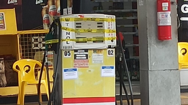 O delegado explica que no primeiro posto na avenida Nossa Senhora de Fátima, foi constatado uma infração criminal de menor potencial ofensivo que consistente no rompimento de um lacre em uma das tampas de uma bomba de combustível que dá acesso aos componentes eletrônicos.