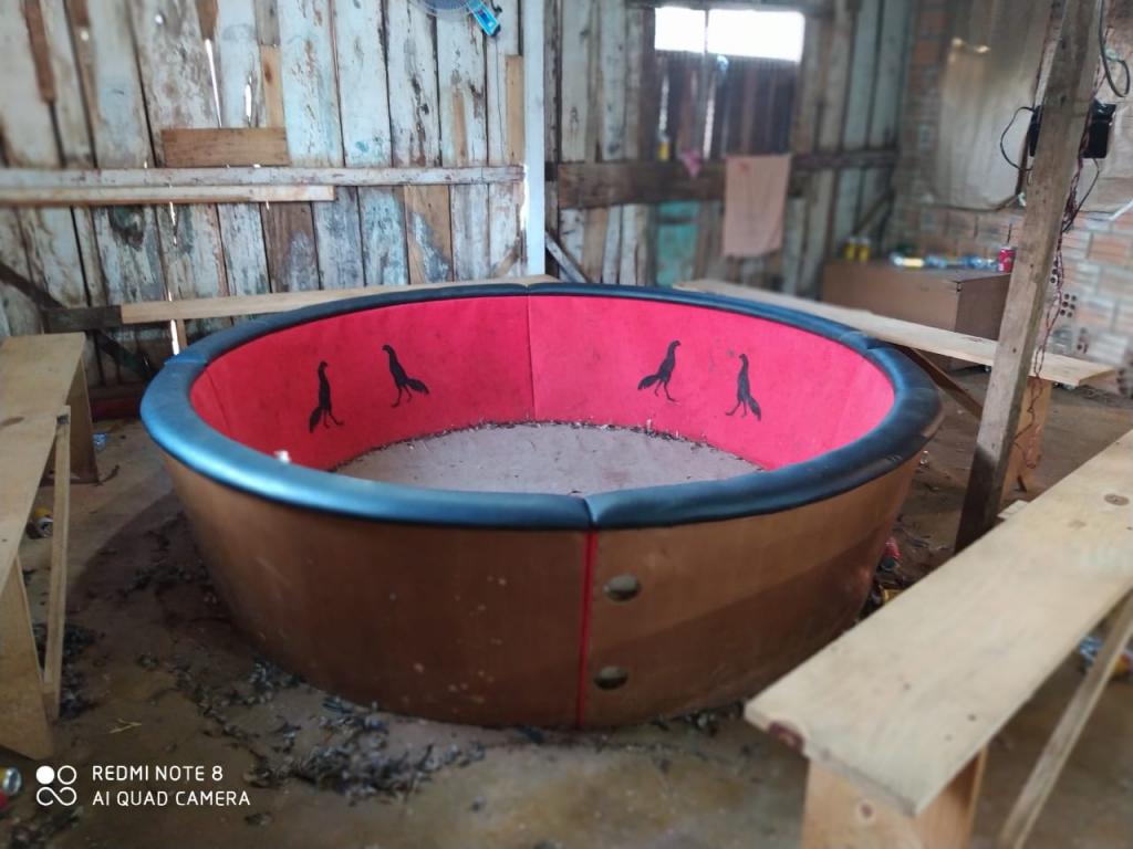 Ao realizar uma vistoria na propriedade, foram encontrados seringas, esporas, biqueiras de aço, um quadro com anotações e 24 galos.