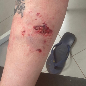 Na manhã de hoje (03) outra mulher foi atacada, mas desta vez por um destes animais que ficam na rua e geralmente andam em grupos.