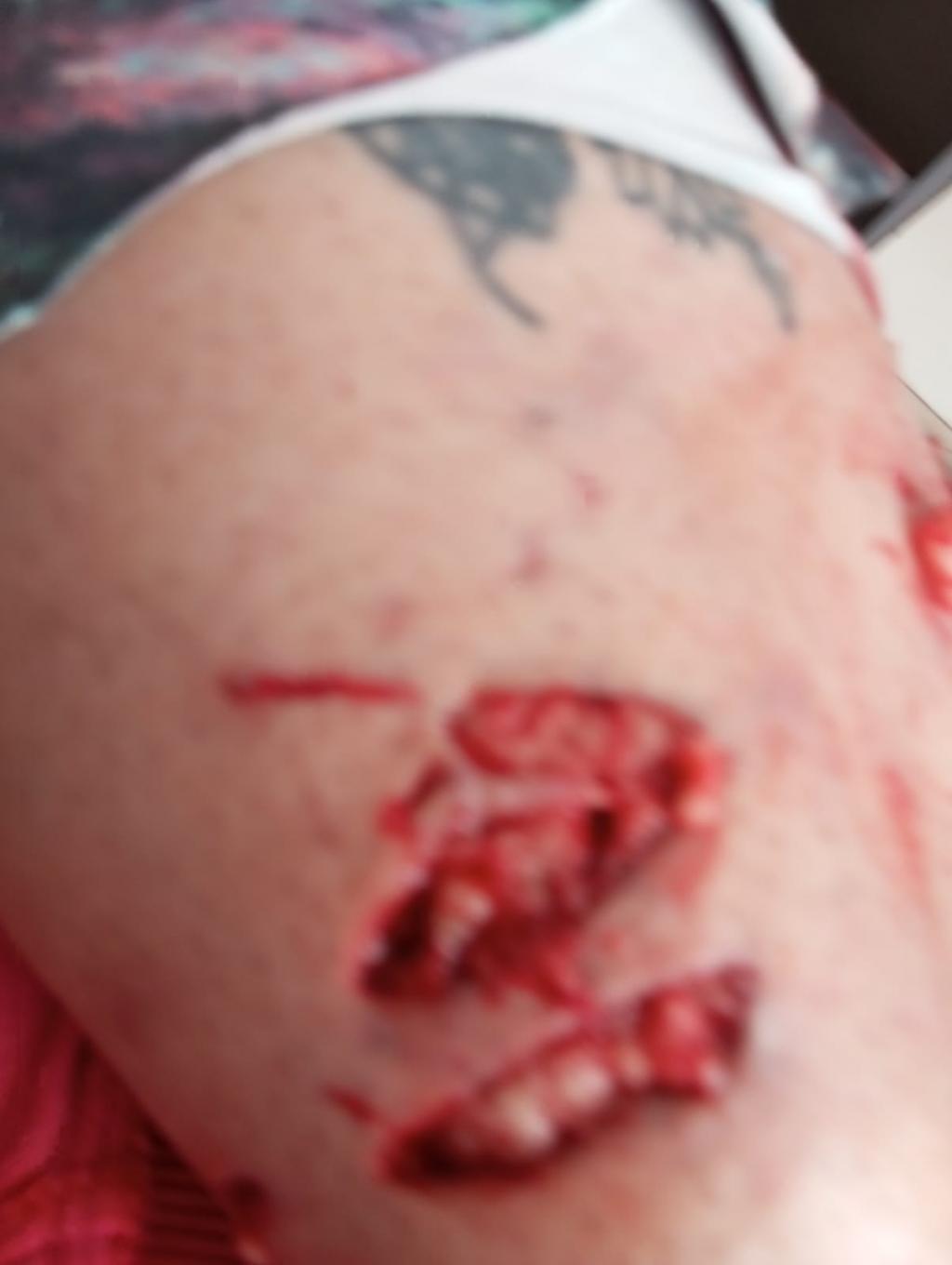 Leidiana, moradora da Rua 8 de Maio, no Mutirão em Nova Santa Rosa, foi atacada pelo seu próprio Pitbull, o Drácula, que está com a família há aproximadamente um ano e seis meses, idade do cachorro.