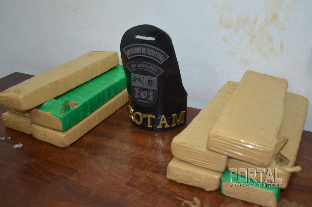 A equipe da ROTAM de Toledo, realizou uma abordagem ontem (23) na região do Jardim Porto Alegre, na Avenida Parigot de Souza, em um ônibus de linha, com itinerário Campo Grande a Florianópolis, onde foi abordado um menor de 16 anos, em revista a bagagem de mão, foi localizado dez tabletes de maconha, o qual totalizou 8,200 kg. Em revista pessoal nada foi encontrado, o mesmo foi indagado e relatou que a levaria de Guaíra para Francisco Beltrão, pagou cerca de R$ 200,00 por cada tablete. O menor e a droga foram encaminhadas para a 20ª SDP.