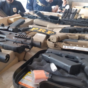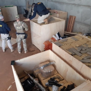 A operação polícia ocorreu na manhã desta sexta-feira (17) no Jardim Diamante, Equipes da Polícia Rodoviária Federal (PRF) e da Polícia Federal (PF) apreenderam dois fuzis, 14 pistolas, munições e toneladas de maconha acondicionadas em grandes caixas de madeira.