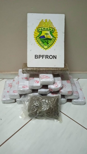 No bagageiro do veículo foi encontrado uma mala contendo 16 tabletes de substância análoga a maconha totalizando 10,600 kg da droga e um pacote a vácuo contendo 300 gramas de substância análoga a maconha tipo capulho.