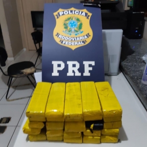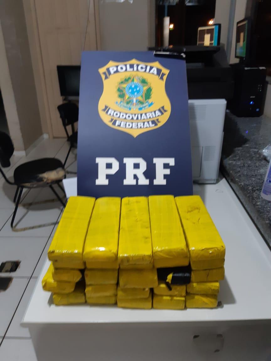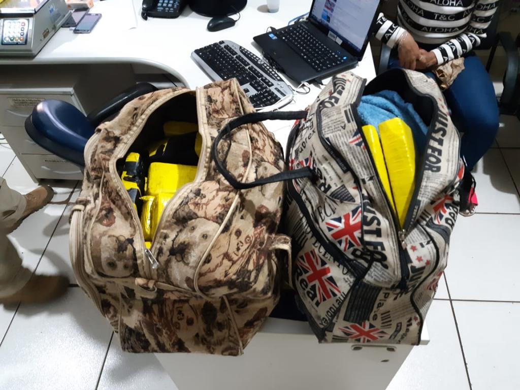 Durante a fiscalização do dos passageiros e de suas respectivas bagagens, foram encontradas duas malas no bagageiro do ônibus cheias de maconha (25 tabletes, 21 kg).