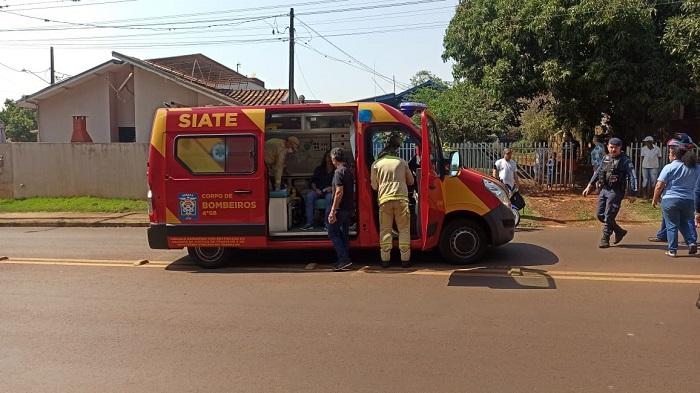 Duas mulheres foram socorridas pelo Siate do Corpo de Bombeiros no final da manhã de hoje, quarta-feira, no Jardim Panorama em Toledo, no acidente se envolveram uma moto Honda Start de 160 cilindradas conduzida por uma jovem de 20 anos e uma ciclista de 50 anos.