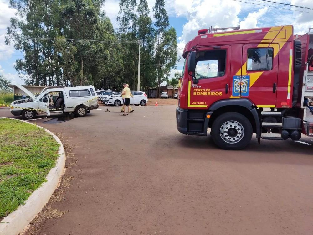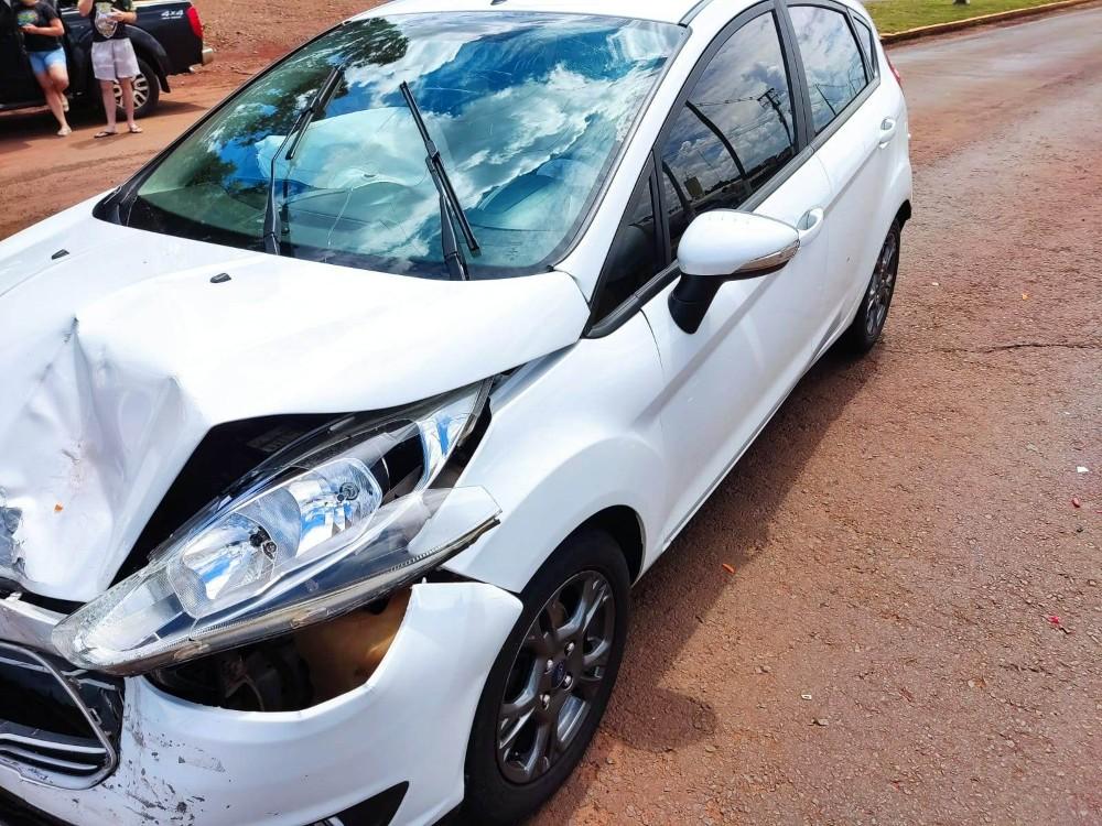 No acidente de trânsito envolveu um veículo Fiesta e um veículo Saveiro.
