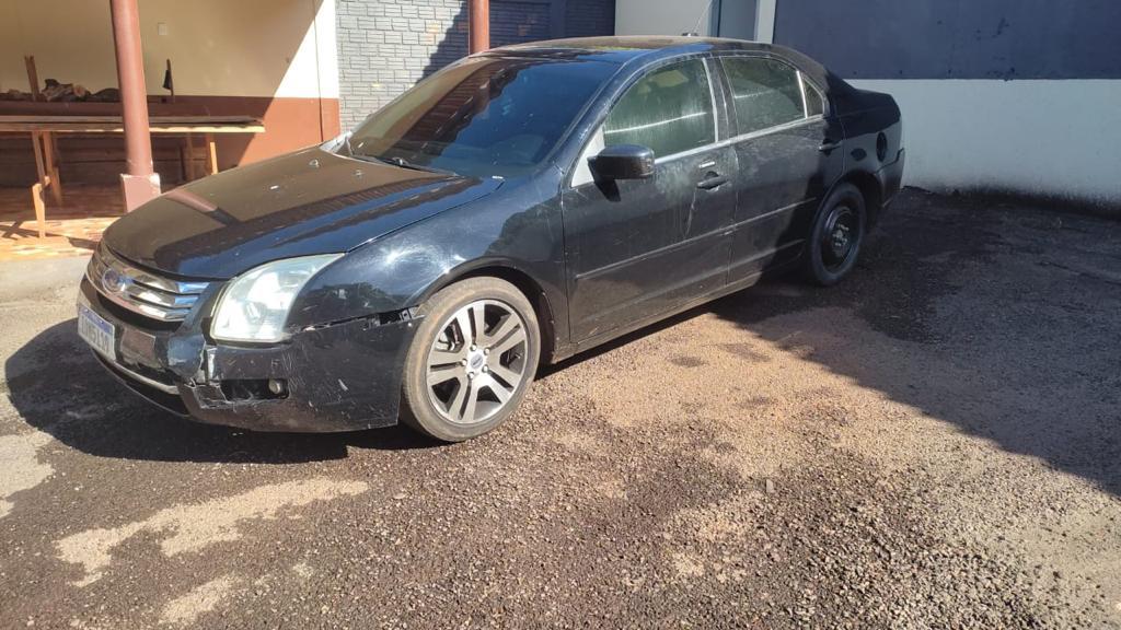 O Ford Fusion, de cor preta, foi abordado pela Policia Militar em Diamante do Oeste nesta segunda-feira, na primeira tentativa o condutor fugiu, mas os policiais realizaram uma perseguição e conseguiram deter o condutor com o carro na PR-488, próximo a Linha Lagoinha.