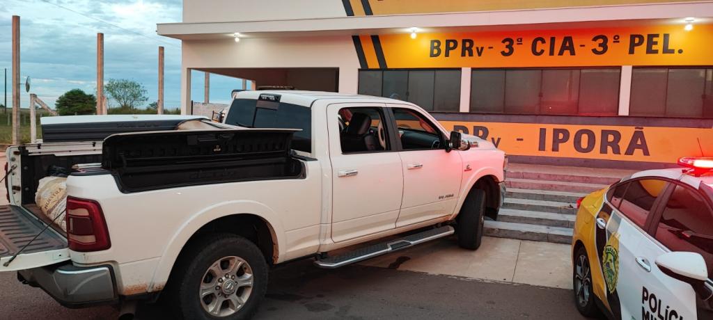 Uma caminhonete Dodge I/RAM 2500, placa Mercosul de Terra Roxa foi detida nesta sexta-feira na rodovia PRC-272 no trevo do município de Franscisco Alves pela Polícia Rodoviária Estadual de Iporã.